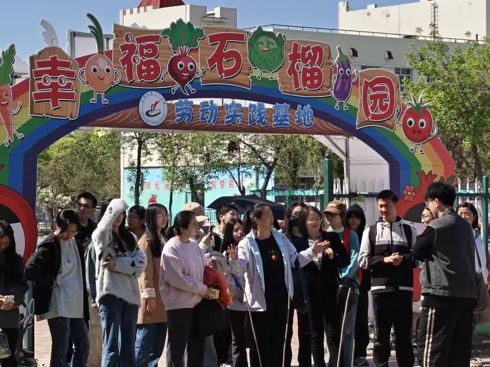 在活动,师生们深入该校“幸福石榴园”劳动实践基地,开展了富有成效的研学活动。该基地种植了草莓、薄荷、韭菜、菠菜等多种作物,并配备了先进的自动喷灌系统。张校长向同学们全面介绍了劳动实践基地的建设历程、种植作物的种类及其生长特性,使同学们深受教育和启迪,他们纷纷表达了积极参与劳动实践的热切愿望。