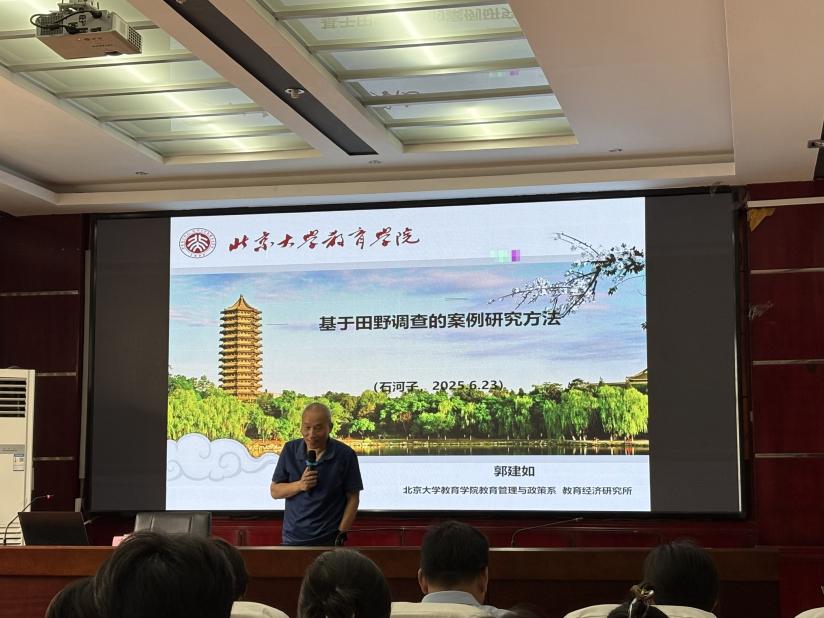 为加强对口支援合作,开阔学院师生研究视野,提升学术研究能力,深化对科研逻辑与方法的认知,师范学院于6月23日上午在一楼学术报告厅举行“石河子大学2025年度对口支援合作项目讲座暨“西部教育论坛”2025年第二场学术讲座。学院有幸邀请北京大学教育学院教授、博士生导师郭建如老师以“基于田野调查的案例研究”为主题开展学术讲座。讲座由师范学院教育系主任付娟教授主持,学院全体教师、研究生及其他感兴趣的师生参加。