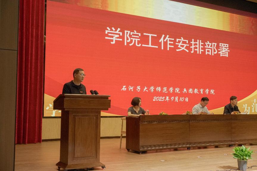 会上,院领导对研究生、本科教育教学、兵团教育学院等相关工作进行了安排部署。韩玺英院长以“凝心聚力 稳扎稳打 奋力谱写学院‘十四五’高质量发展篇章”为题,回顾了学院过往取得的成绩,并对本学期工作提出了整体要求。希望各位老师新学期,新气象,团结奋斗,只争朝夕,为创造学院“十五五”美好未来努力拼搏!