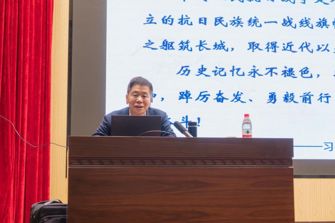 陈明选教授从精神引领与战略智慧切入,围绕“精神铸魂、战略突围、教育筑基和薪火永续”四个维度,深入剖析中国共产党领导抗战胜利的精神内核与战略智慧,通过跨越时空将历史与现实链接,将抗战精神图谱的当代传承以独特的视角呈现。讲座内容丰富、逻辑严谨、思想深刻,语言生动、事例翔实、见解独到,可谓是理论高度与实践结合的典范,这既是陈明选教授对延安精神深刻内涵与时代价值的精准解读和权威阐释,也是引领同学们深入学习党史国史、弘扬伟大抗战精神、赓续红色血脉的思政课。