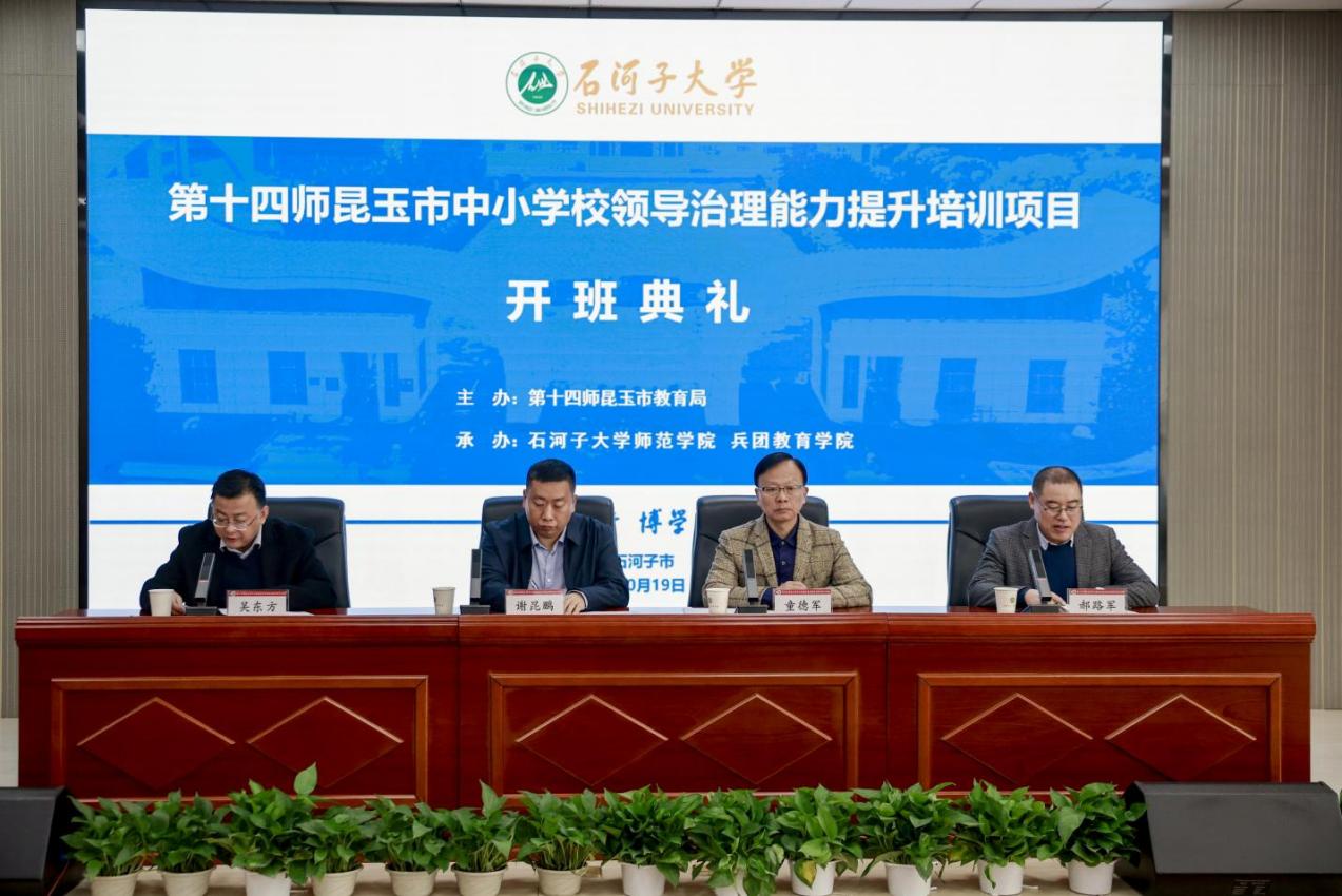 10月19日,由兵团教育学院、师范学院承训的第十四师昆玉市中小学校领导治理能力提升培训项目在石河子大学学术交流中心举行,兵团教育学院院长童德军、第十四师昆玉市教育局党组书记局长谢昆鹏、师范学院副院长吴东方、项目团队和48名参训学员参加典礼,开班典礼由吴东方主持。