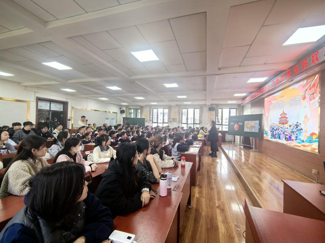 随后,石河子第一小学的李老师呈现了一堂精彩的展示课《中华民族一家亲》。课程从“新疆维吾尔自治区成立70周年”这一热点切入,巧妙引导学生通过观察地图、参与互动游戏等方式自主归纳知识点。在小组合作环节,学生们通过绘制手抄报、模拟新闻播报、讲述感人故事等多种形式进行学习成果汇报。其中,讲述“帕米尔雄鹰”拉齐尼·巴依卡英雄事迹的小组,情感真挚,叙述动人,深刻展现了课程内容在学生心中激发的爱国情怀与民族认同。课程尾声,孩子们在象征民族团结的“石榴籽”便利贴上写下心声,一位小朋友写道:“祝愿祖国繁荣昌盛,各民族像石榴籽一样紧紧抱在一起。”这堂生动的道法课,不仅为小学生们铸牢了中华民族共同体意识,也为在场的未来教师们展示了如何将德育目标无痕融入课堂教学实践。