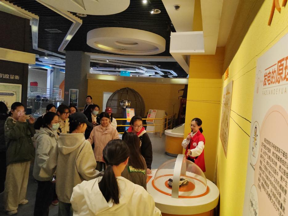 进入作为科技馆传递基础科学知识的核心区域——“魅力科学”展区,这里系统覆盖光学、电磁学、力学、声学等多个领域。在讲解员的专业指导下,学子们不仅细致观察科学现象的呈现形式,更着重记录展品的互动逻辑、知识原理与小学生认知水平的适配点——比如思考“如何将电磁感应实验转化为小学生可操作的课堂小任务”“怎样用航天模拟体验设计成综合实践中的‘职业探索’模块”,全程紧扣小学综合实践课程“实践性、探究性”的核心要求,为课程设计积累鲜活的科技素材。