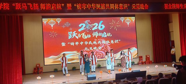 2025年12月31日,石河子大学师范学院(兵团教育学院)举办“跃马飞扬 师韵启航”暨“铸牢中华民族共同体意识”元旦晚会。此次活动以“游园+表演”的形式展开,吸引了全院师生热情参与,大家一同在欢声笑语中迎接2026年的到来。