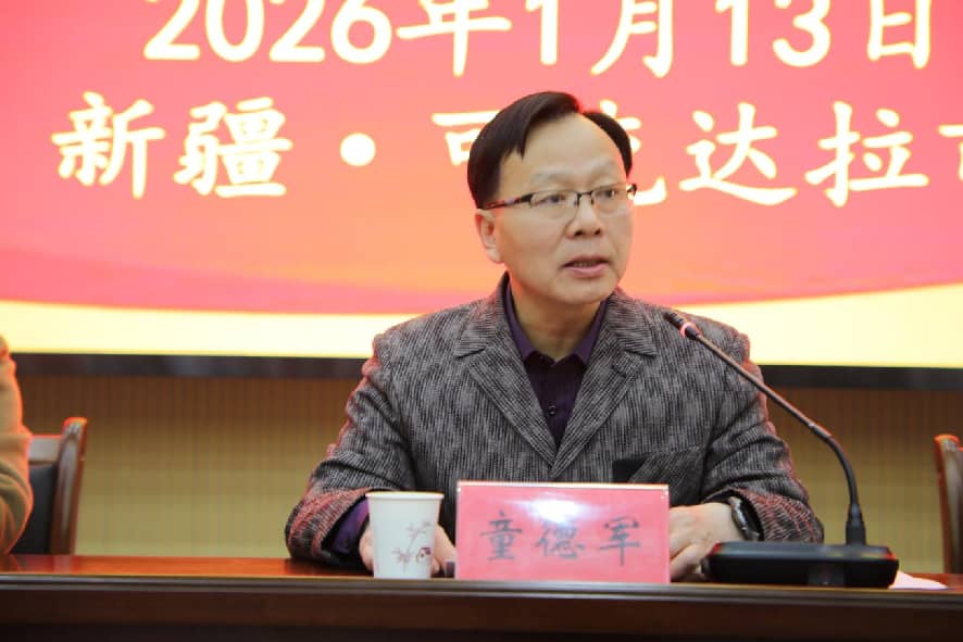 童德军介绍了我校坚持“以服务为宗旨、在贡献中发展”,长期扎根边疆办人民满意的教育的工作成效,以及学院服务兵团高职院校提质扩容取得的实绩。勉励全体参训学员,继续深入学习贯彻习近平总书记在全国教育大会上重要讲话精神、关于教育的重要论述,以教育家精神铸魂强师,争做学生为学、为事、为人的大先生,在砥砺奋进中使青春出彩、人生升华。